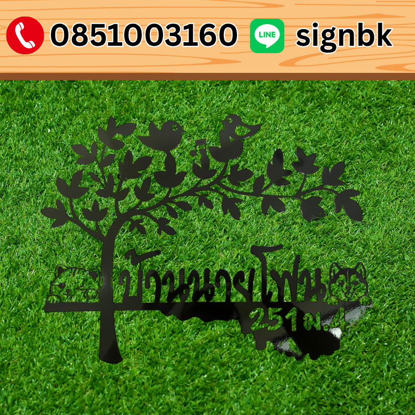 แกะสลักตัวอักษรชัดเจน พร้อมลงสีทองหรือขาว สวยงาม ทนแดดทนฝน ☀️